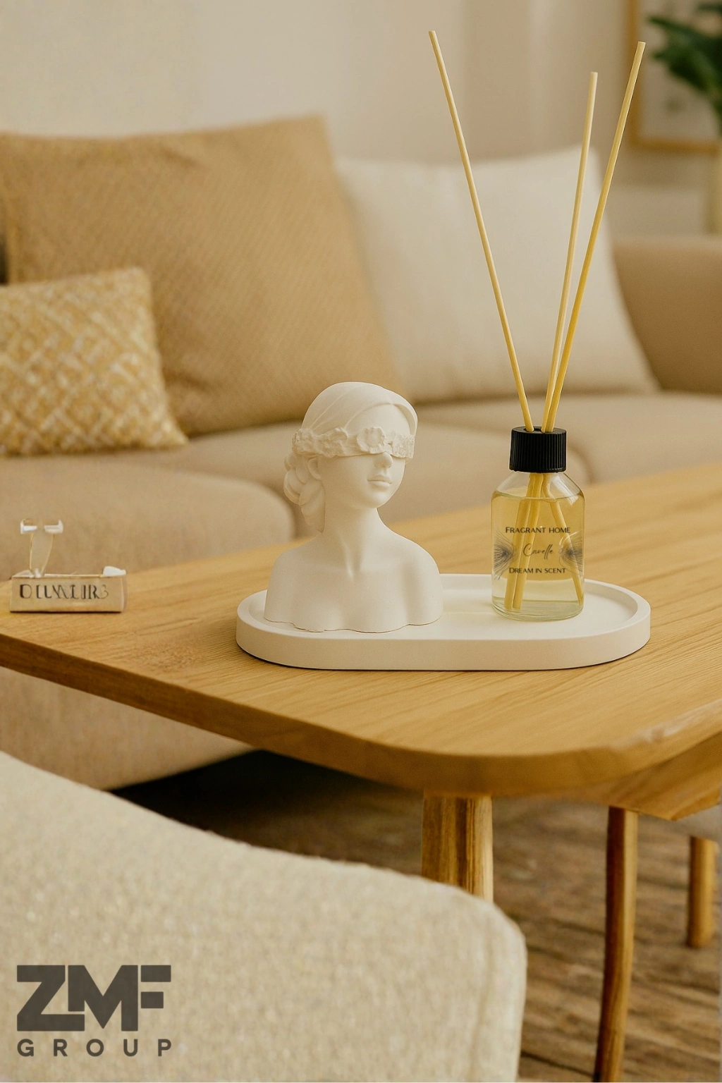 - Soyut tasarımıyla modern ve şık bir görünüm sunan beton tepsi üzerinde çiçek desenli kadın biblo, mekanınıza sanatsal bir dokunuş katıyor; - Yüksek kaliteli beton materyali sayesinde uzun ömürlü kullanım ve dayanıklılık sağlar; - Vanilya aromalı oda kokusu ile mekanınızı taze ve hoş kokulu bir atmosfere büründürür, evinizdeki huzur ve sıcaklığı artırır;