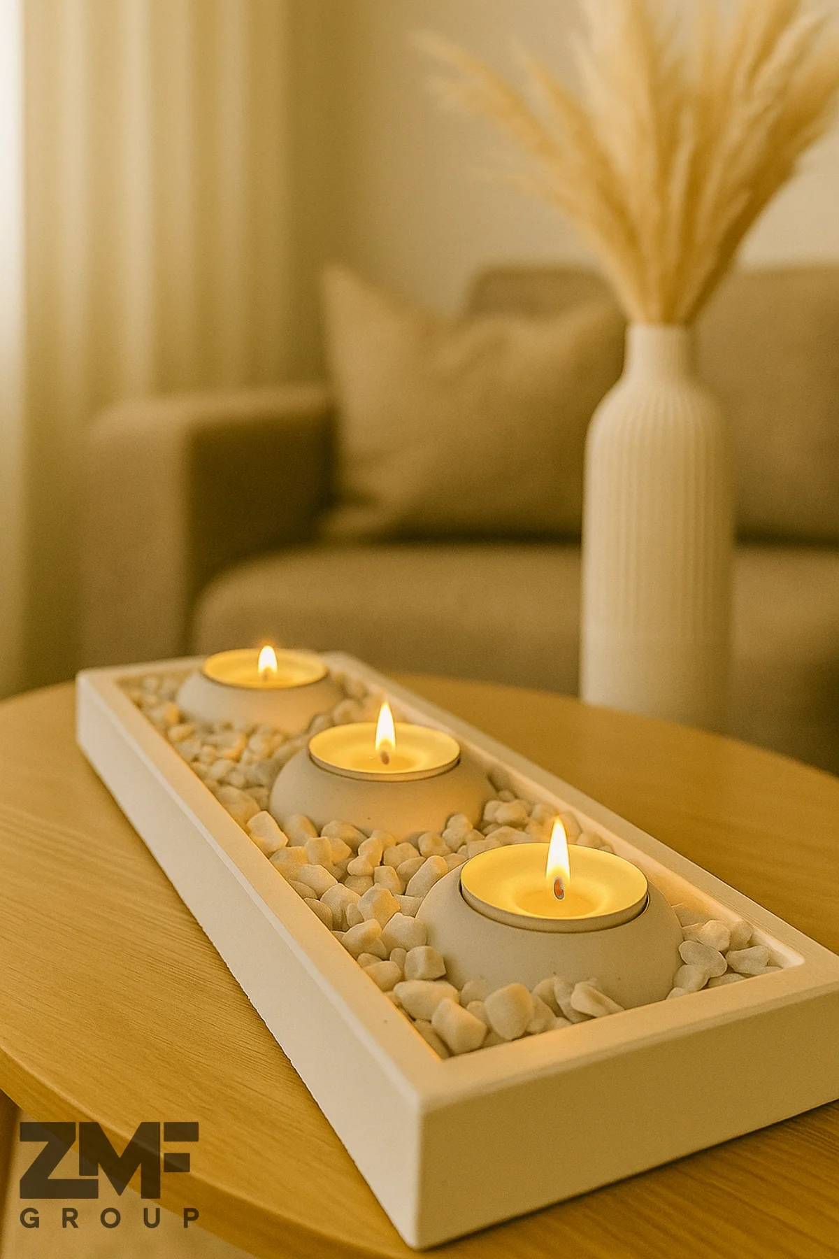 Beton Tepsili Tealight Mumluk Hediyelik Dekorasyon Seti(MUMLAR DAHİLDİR)