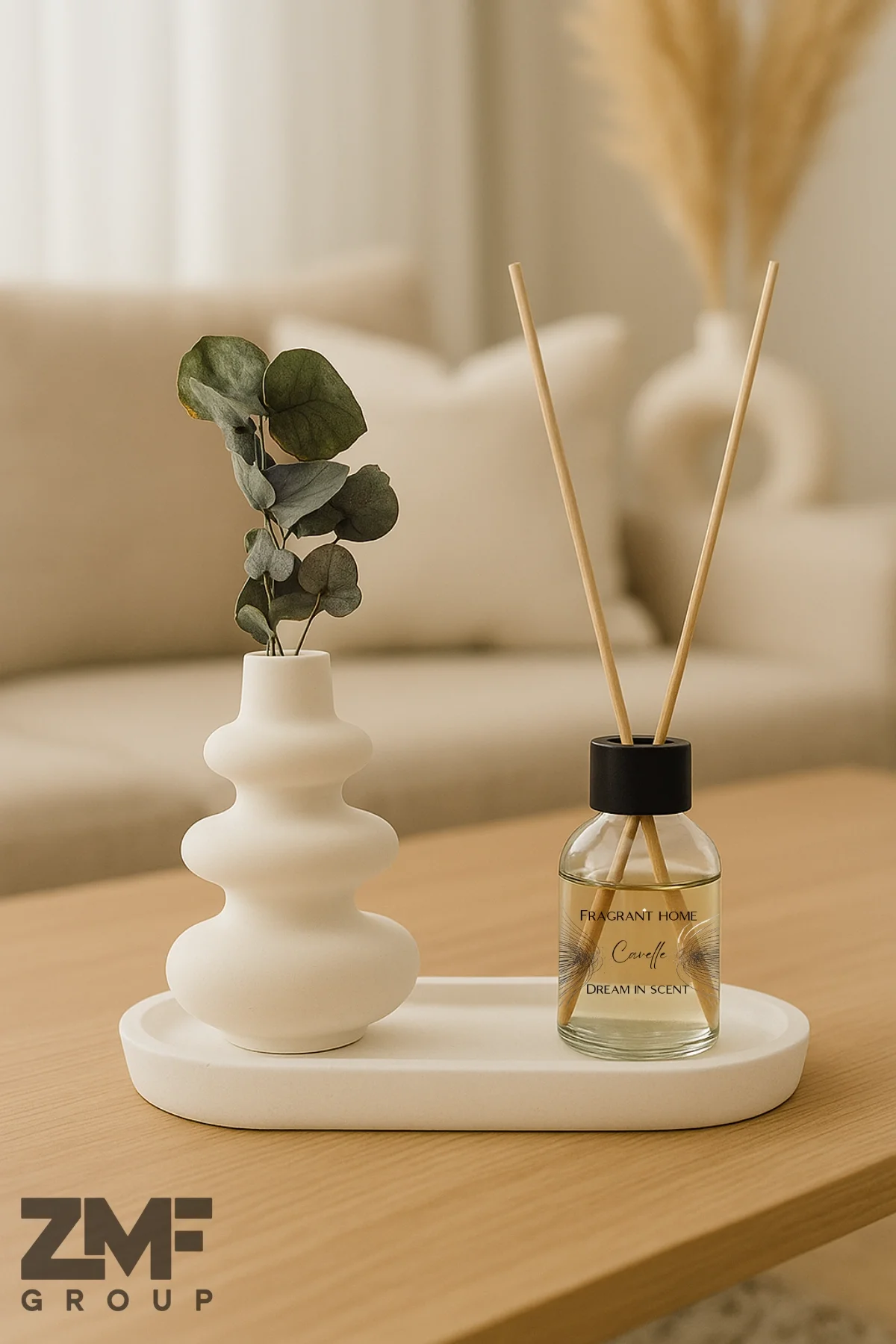Beton Tepsili ve Twist Şeklinde Vazo ile Vanilyalı Oda Kokusu