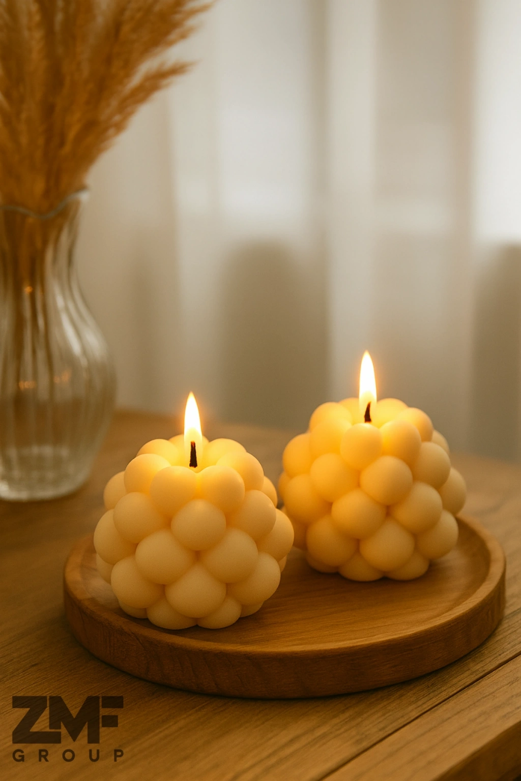 Cavelle tarafından özel olarak tasarlanan Dekoratif 2'li Kokulu Top Bubble Mum, evinize şıklık katacak benzersiz bir dekorasyon ürünüdür.