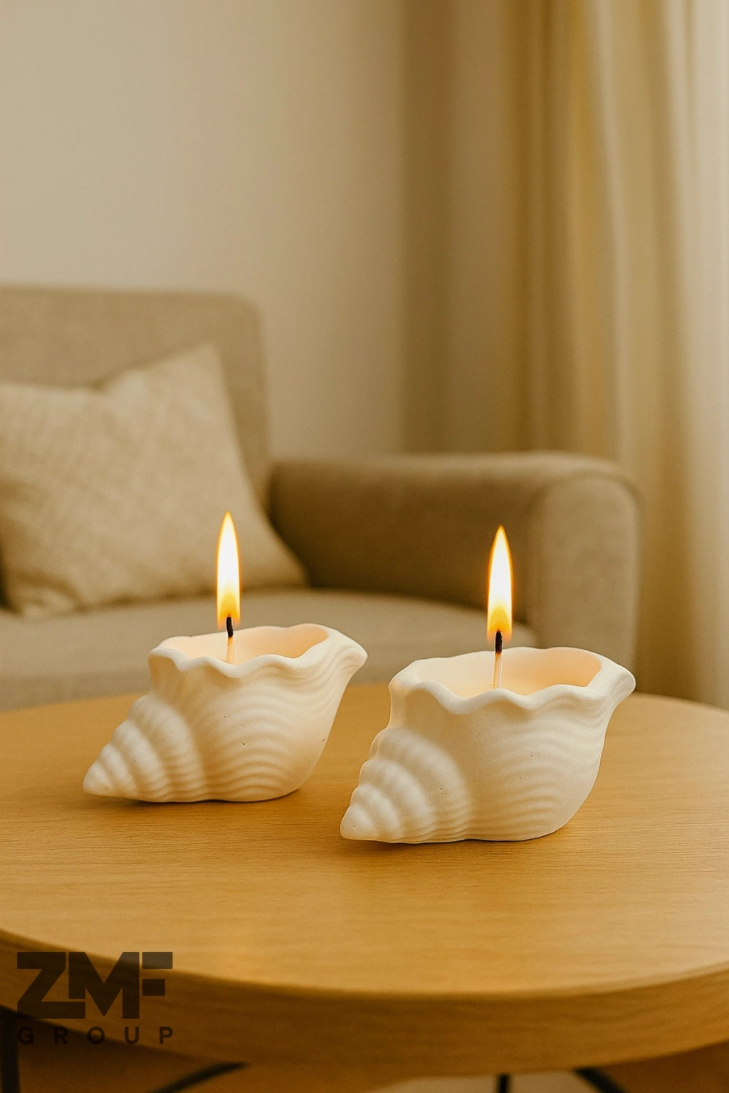 Cavelle'nin özel tasarımı olan Dekoratif Hediyelik İkili Bebek Pudrası Kokulu Deniz Kabuğu Ahşap Fitilli Mum, evinizde şık bir atmosfer yaratmanıza yardımcı olacak yaratıcı bir dekorasyon ögesidir.