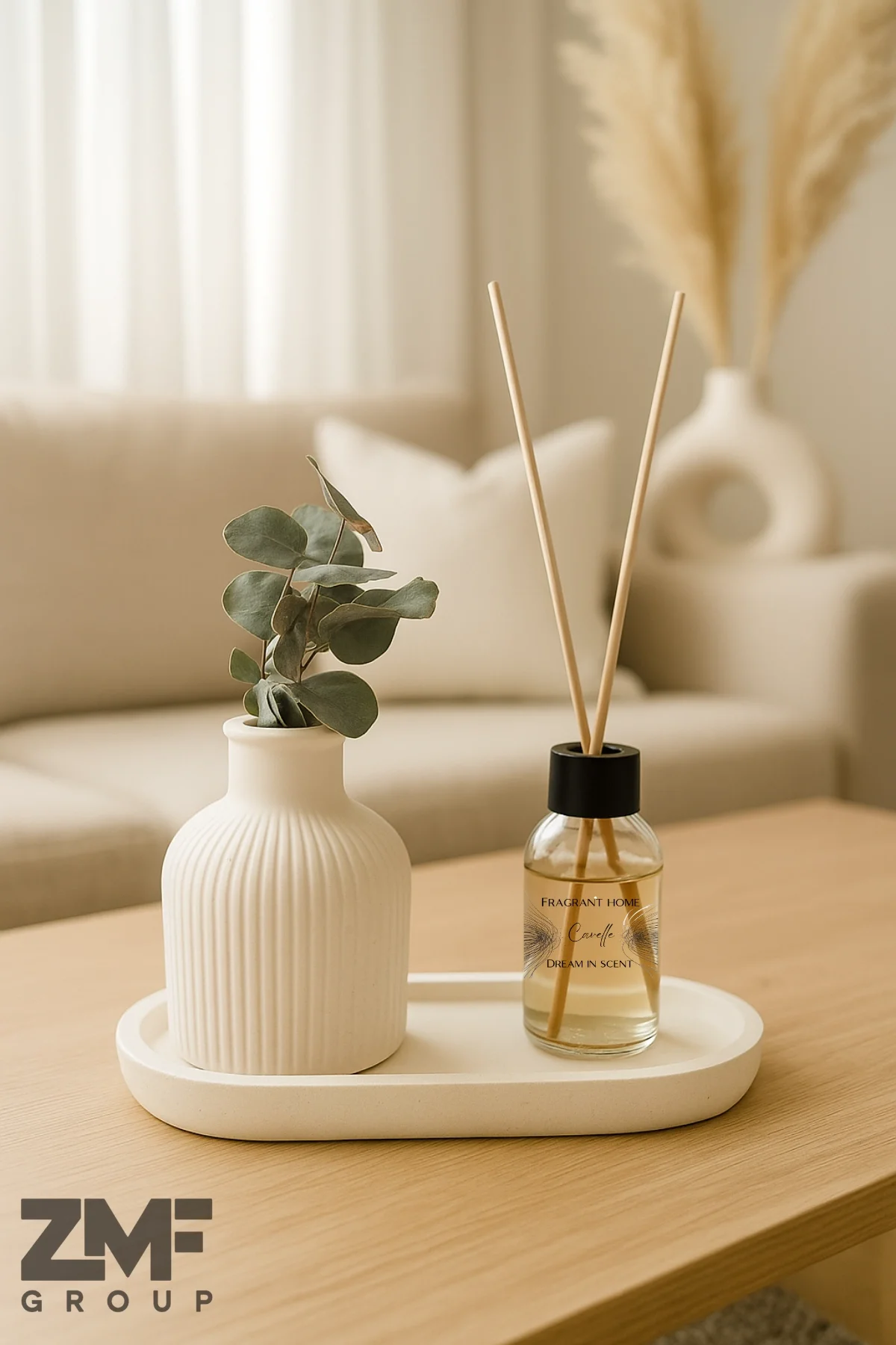 Cavelle Dekoratif Pampas Vazosu ve Bebek Pudrası Oda Kokusu Seti Stant ile evinizdeki atmosferi değiştirin, misafirlerinizi etkileyin!