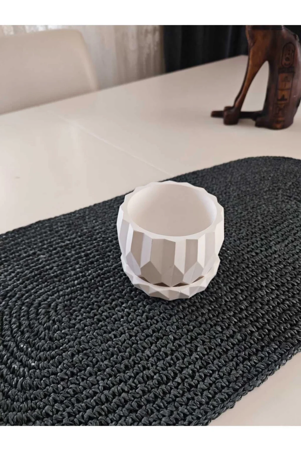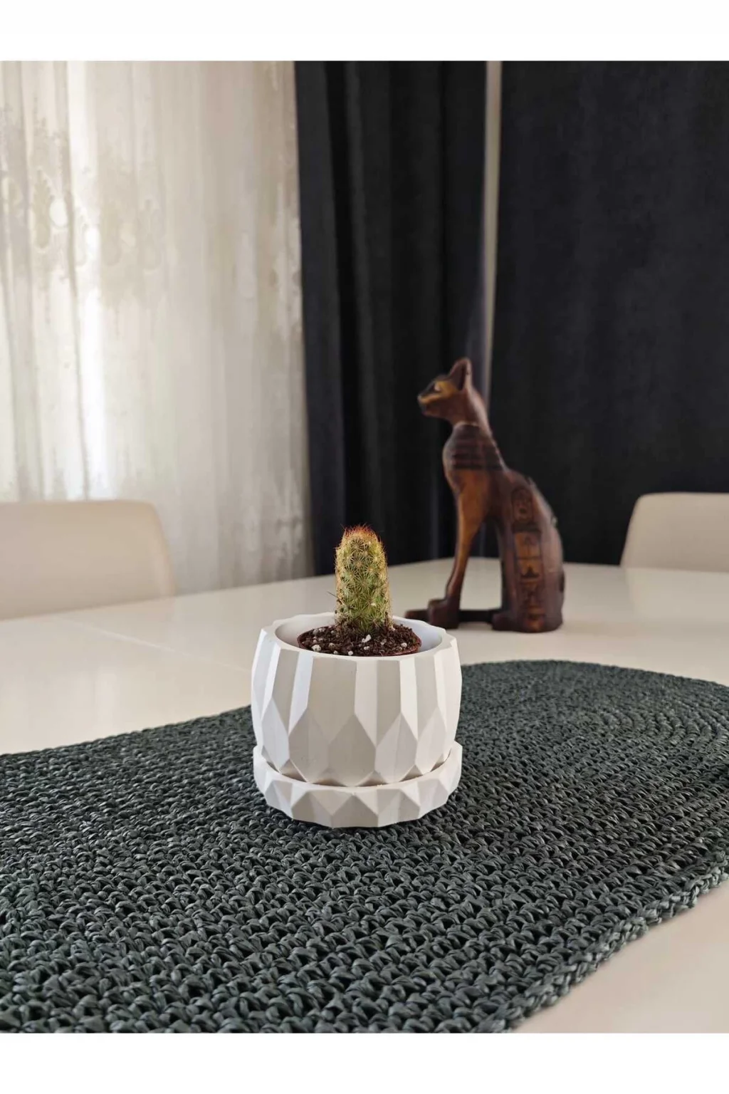 Evinizin atmosferine modern bir dokunuş katın! Bu geometrik desenli saksı, minimalist tarzıyla dikkat çekerken, doğal bitkilerinizi sergilemek için ideal bir ortam sunar. ; Zarif ve çağdaş tasarımı, her türlü iç mekana uyum sağlar ve evinizi sadece bitkilerle değil, aynı zamanda estetik birer parçayla doldurur. ; Yüksek kaliteli alçıdan üretilmiş olan saksı, dayanıklılığıyla da öne çıkar. ; Ev dekorasyonunuzu tamamlamak ve yeşil dokunuşlarla evinizi canlandırmak için bu geometrik saksıyı tercih edin. ; Ürün Ölçüsü:9x10cm;