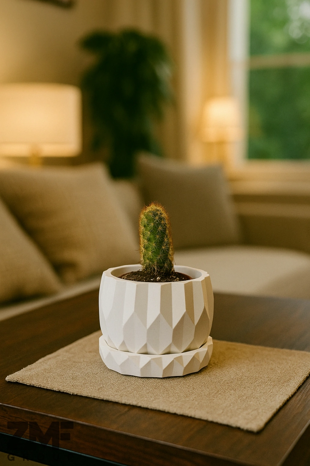 Geometrik Tasarım Sukulent Saksı ve Alt Tabağı