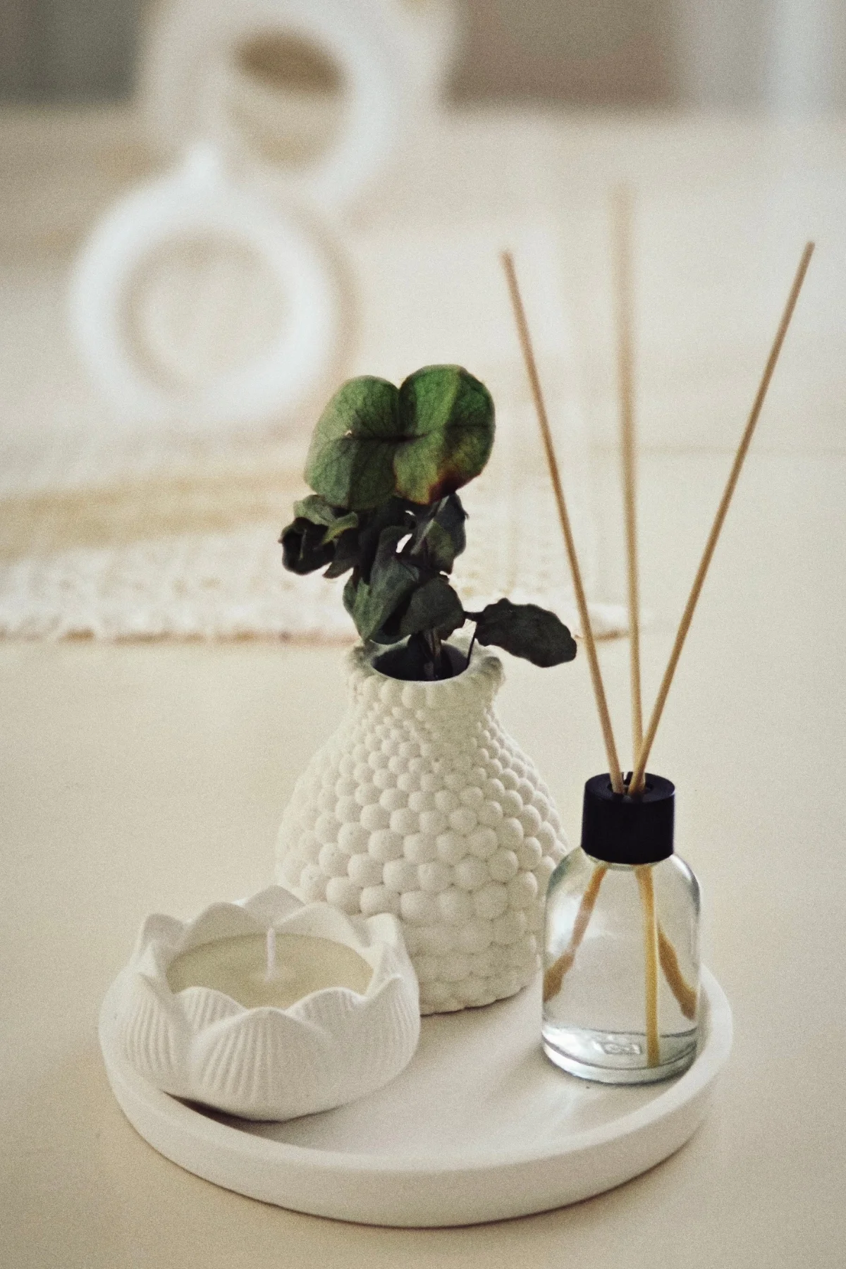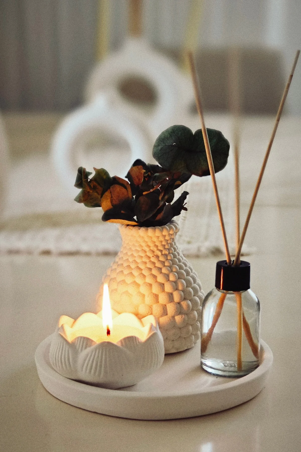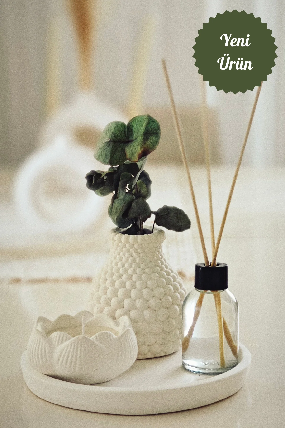 Özel günlerde sevdiklerinize hediye edebileceğiniz şık bir kombinasyon: Hediyelik Tepside Bubble Vazo Bebek Pudrası Kokulu Lotus Mum ve Oda Kokusu seti ile evinizde huzurlu bir atmosfer yaratabilirsiniz.