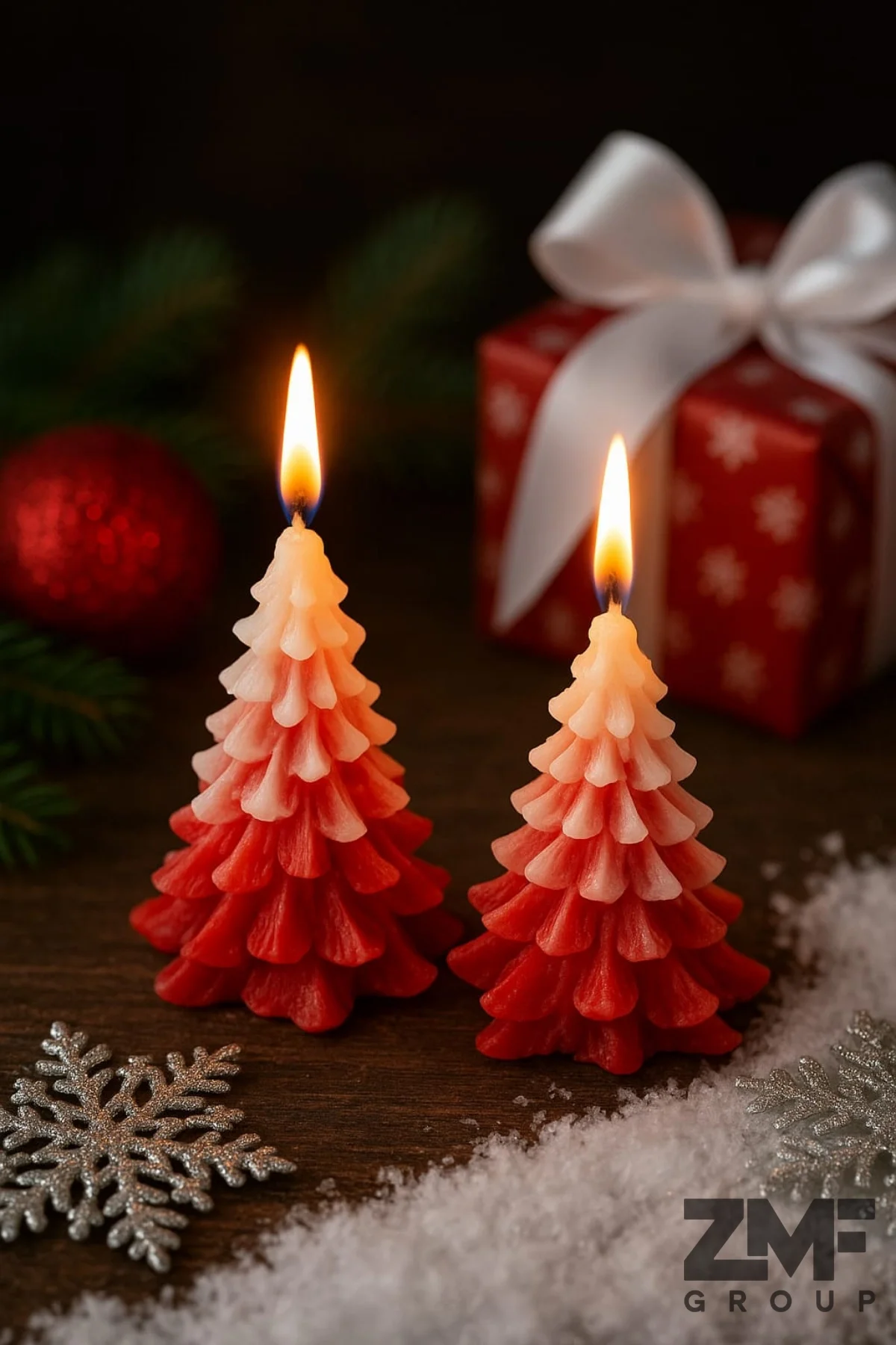 Cavelle İkili Yılbaşı Temalı Dekoratif Üzeri Karlı Kırmızı Çam Ağacı Mum ile evinizi sıcacık bir atmosfere kavuşturun!