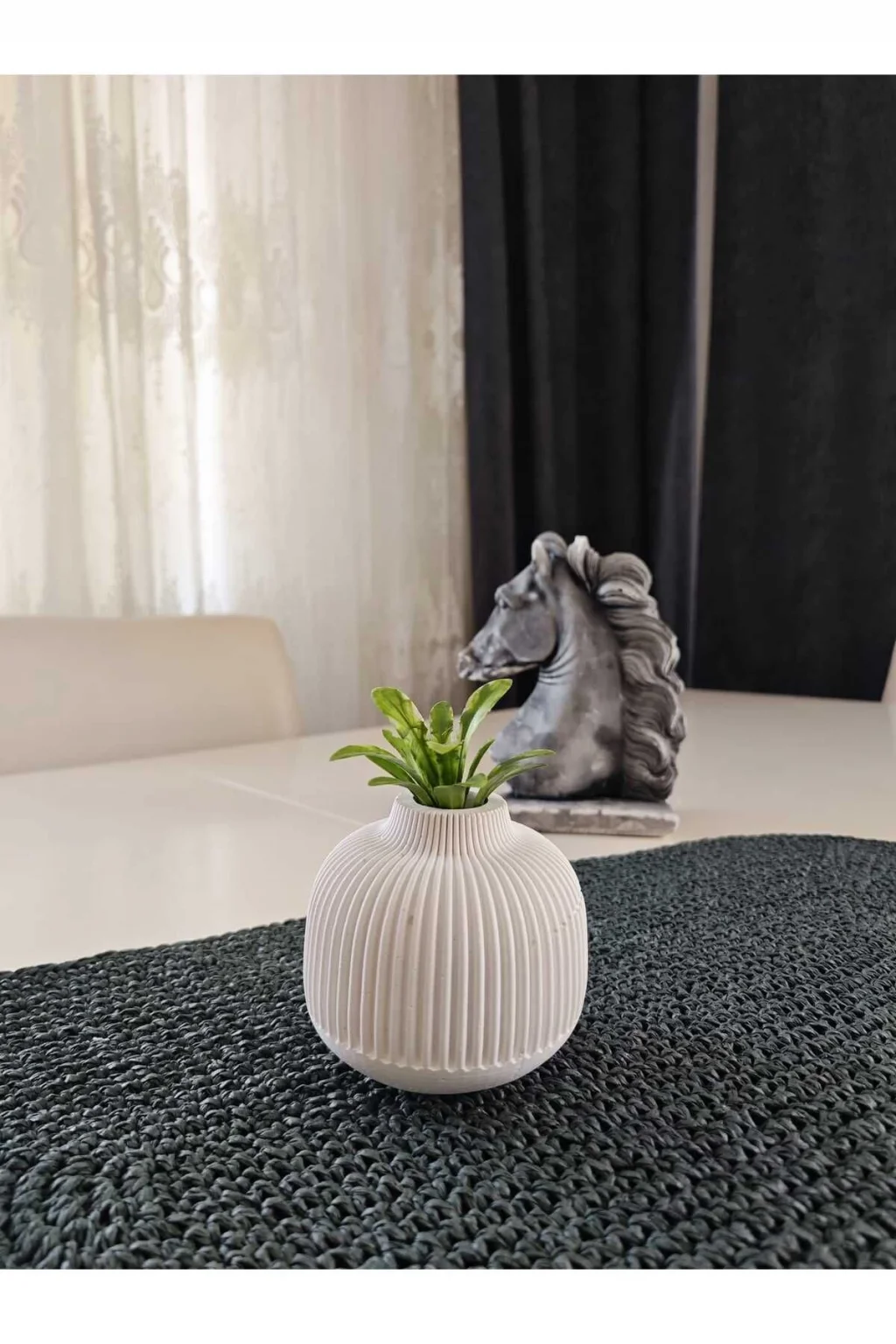 Evinizi sıcak ve davetkar bir atmosfere dönüştürmek için buradayız! İskandinav tarzının sadeliği ve doğal zarafetini yansıtan bu vazo, modern ve şık bir dekorasyonun anahtarıdır. ; Bu vazonun özenle işlenmiş minimalist tasarımı, evinizin her köşesine huzur ve ferahlık getirir. ; Yüksek kaliteli güçlendirilmiş beton ve taştozu karışımı ile üretilmiş ve el işçiliğiyle şekillendirilmiştir. ; Her detayıyla özel olan bu vazo, çiçeklerinizin ve bitkilerinizin doğal güzelliğini ön plana çıkarır. ; Ev dekorasyonunda İskandinav tarzını keşfedin ve evinize doğanın huzurunu getirin. ; Ürün Ölçüsü: 9 cm;