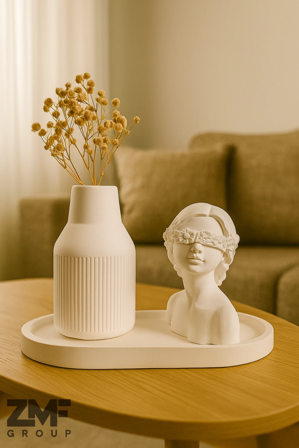 Kadın Figürlü 3'lü Vazo Seti Tepsi & Konik Vazo & Biblo