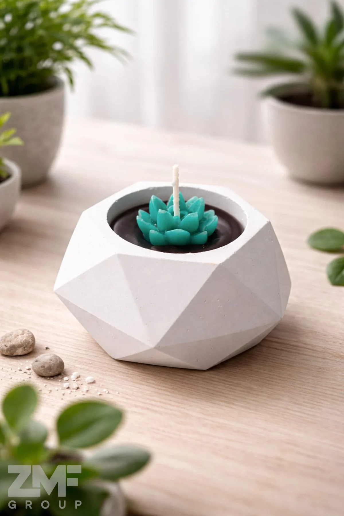 Cavelle Kristal Form Beton Saksı İçinde Dekoratif Sukulent Mum, evinize şıklık katacak bir dekorasyon ürünüdür.