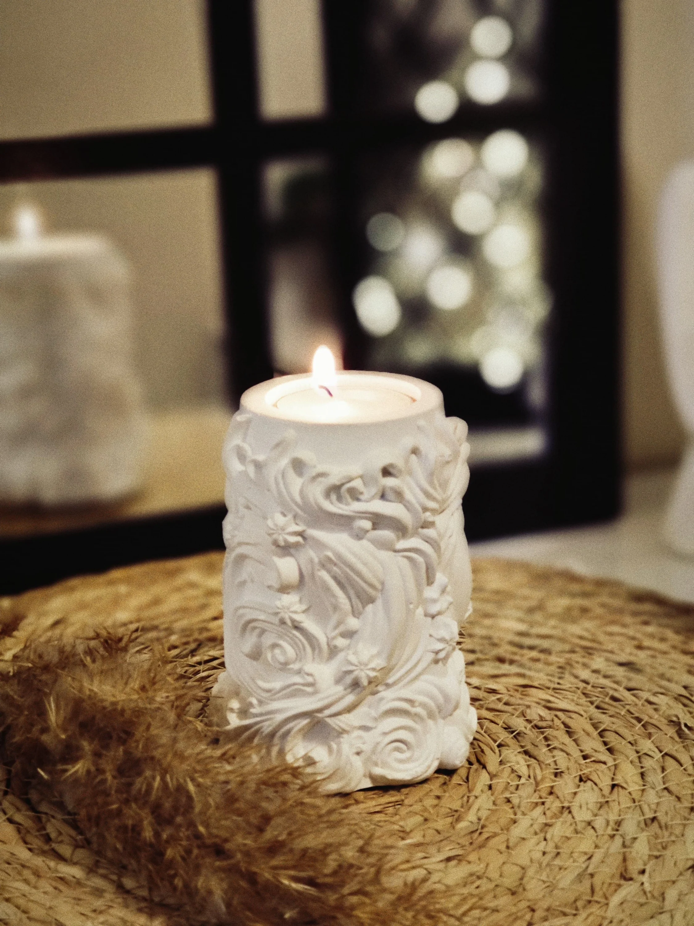 Özel Tasarım Hatlara Sahip Sarmaşık Sütun Tealight Mumluk, şık ve estetik bir dokunuşla yaşam alanlarınızı aydınlatmak için mükemmel bir tercihtir. Akronistone markası tarafından özenle üretilen bu ürün, çevre dostu malzemelerden taş tozu ile hazırlanmıştır. Ayrıca mum hediye edilerek size ulaşmaktadır.